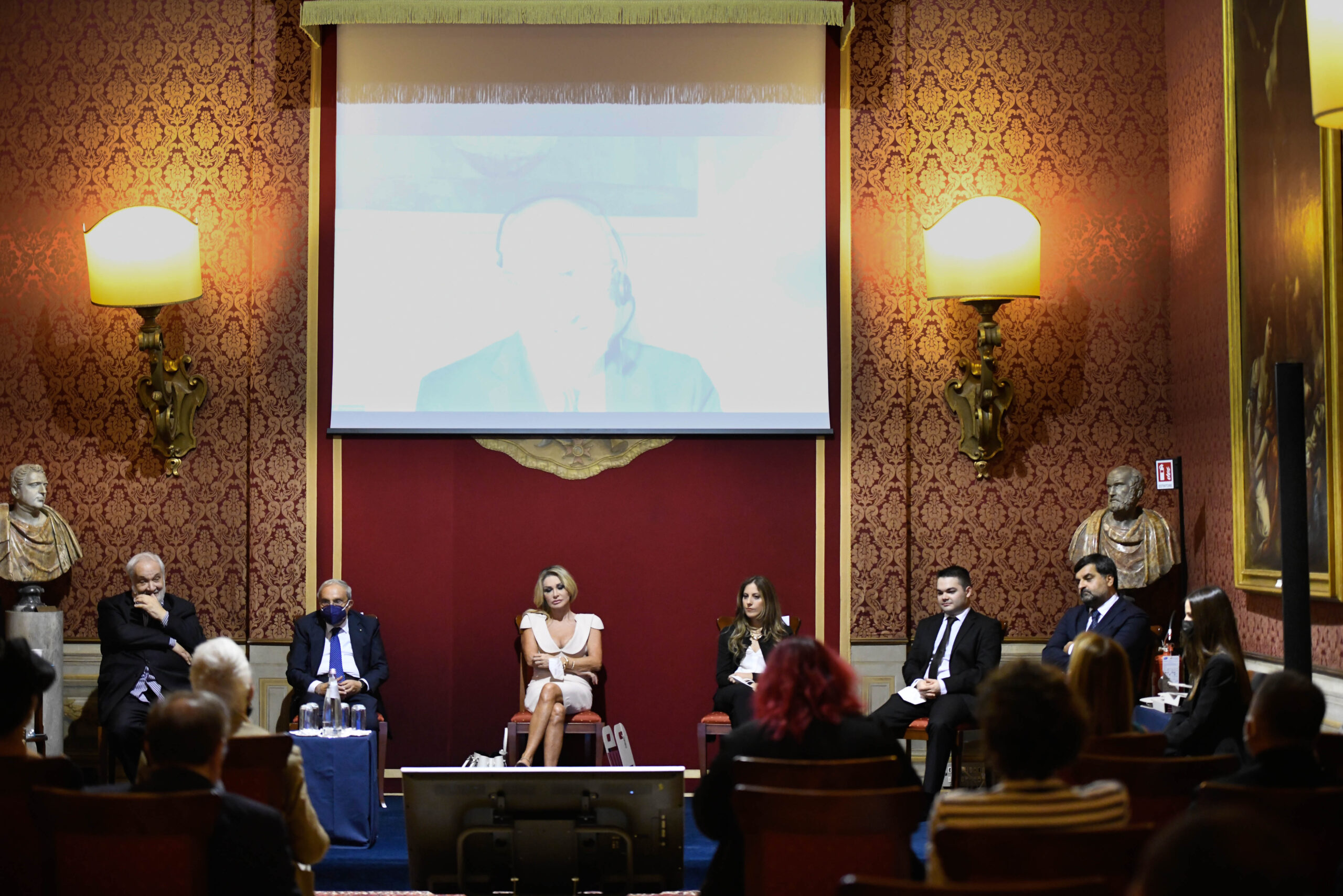 Premio Socrate 2021. Foto Di Maurizio Riccardi. Un Momento Del Collegamento Video Con Francesco Caio