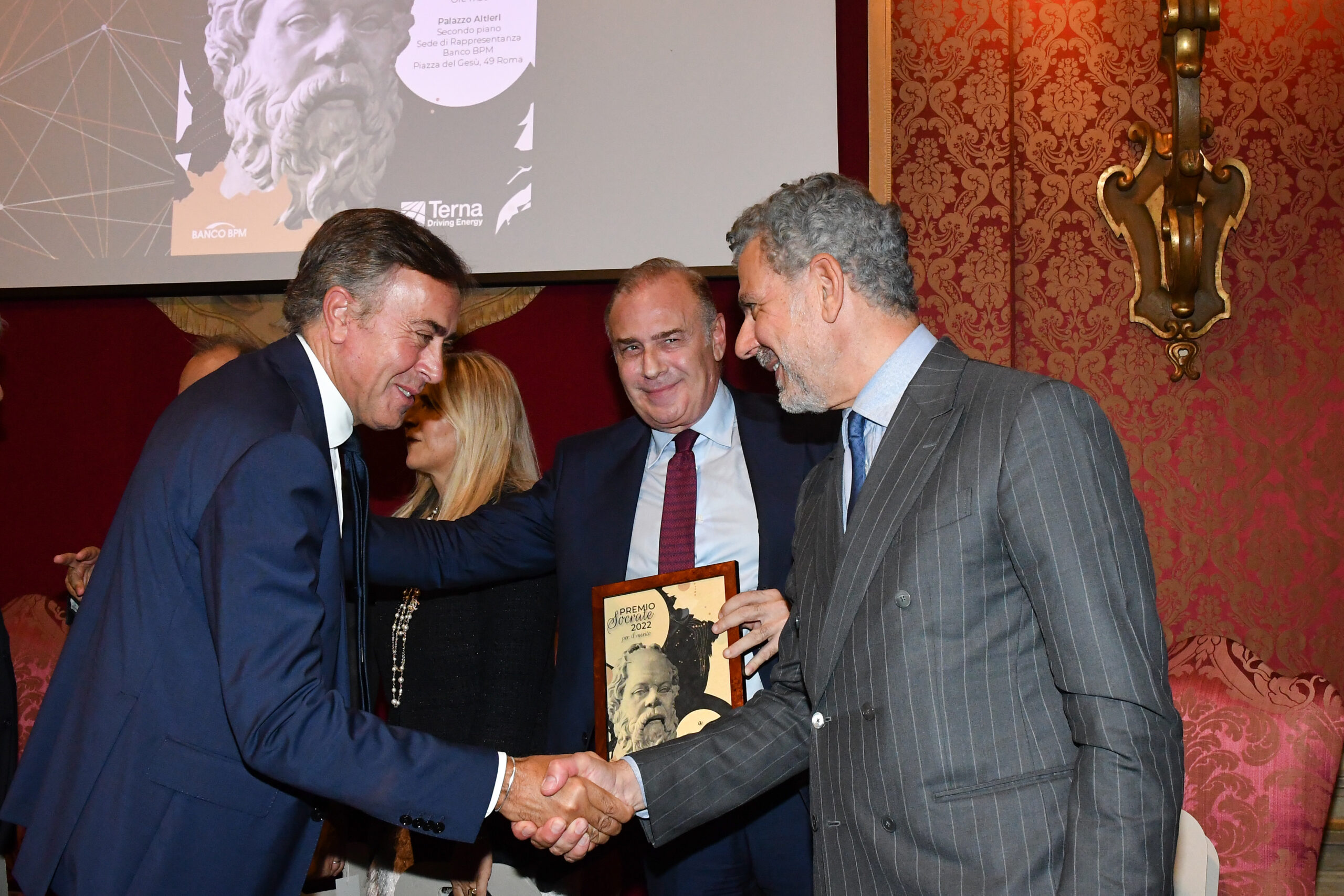 Premio Socrate 2022, Foto Di Maurizio Riccardi. Da Sinistra, Simone Cantagallo, Francesco Starace, Costanza Esclapon De Villenueve